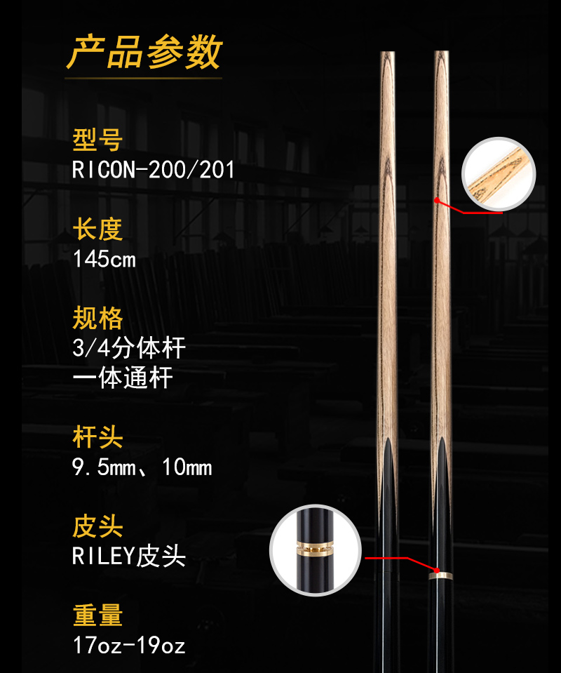 英国Riley莱利斯诺克台球杆小头RICON球杆