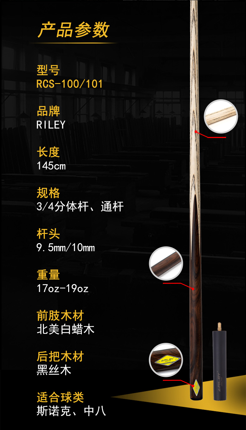 RILEY莱利RCS-100/101中式黑八斯诺克球杆
