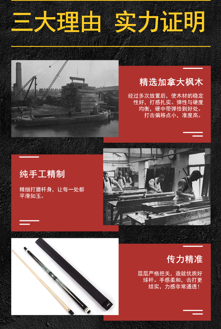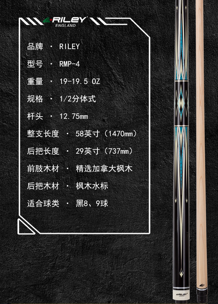 RILEY 莱利台球杆中式黑八美式九球大头球杆黑8桌球杆RMP-4