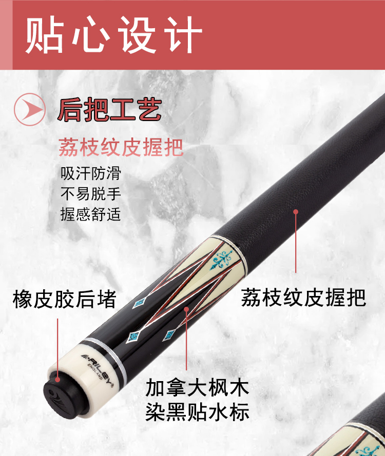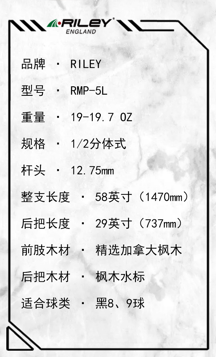 RILEY 莱利台球杆中式黑八美式九球大头球杆黑8桌球杆RMP-5L