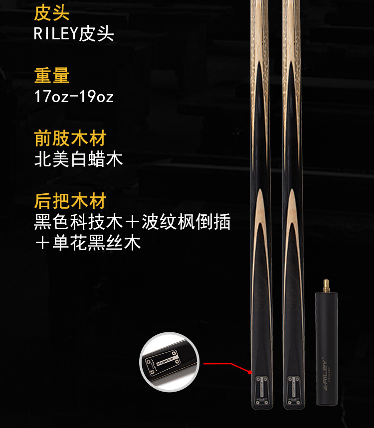 RILEY莱利RELE-101斯诺克台球杆小头杆中式黑八机雕剑纹通杆