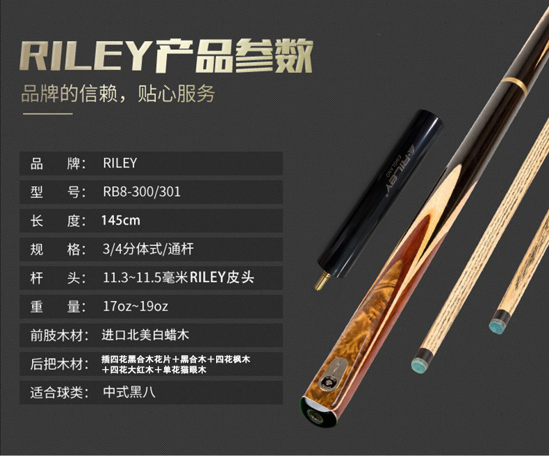 Riley 莱利 RB8-300/301中式黑八 大头杆
