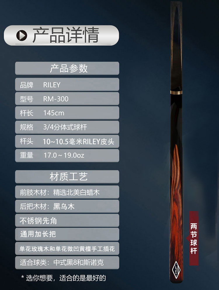 Riley 莱利 RM-300/301 大师(蓝标)系列台球杆